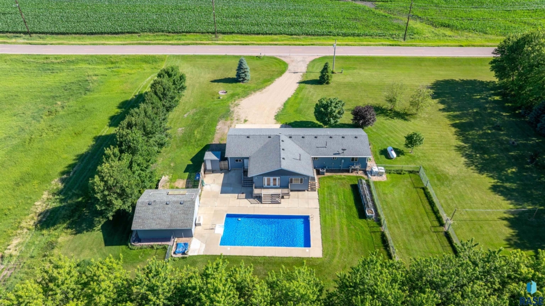 Great value acreage in South Dakota with top-end upgrades! Escape to the country and embrace a lifestyle of comfort, adventure, and relaxation on this stunning property. Nestled amidst a mature shelter belt, this 3-bedroom, 3-bath home offers all the charm of rural living with modern conveniences and thoughtful upgrades. The heart of the home showcases Custom Cabinetry throughout. Recent updates include a NEW furnace and AC system plus all NEW siding, ensuring peace of mind for years to come. Outdoor enthusiasts will love the expansive features this property offers! Tend to your 30×88 fenced, irrigated garden and enjoy the bounty of six fruit trees while hosting friendly matches on your private volleyball court. When it is time to unwind, take a dip in the sparkling Capri-colored in-ground swimming pool or practice your aim at the designated shooting range. Storage and hobby space are abundant with two garages, ideal for vehicles, equipment, or that dream workshop you have always wanted. Whether you are seeking a tranquil retreat or an active lifestyle, this property is perfectly designed for both. Only a 15 minute drive to Sioux Falls or 2 minute drive to Lennox for all the amenities. Don’t miss your chance to call this rural haven your home! Schedule a private tour today!